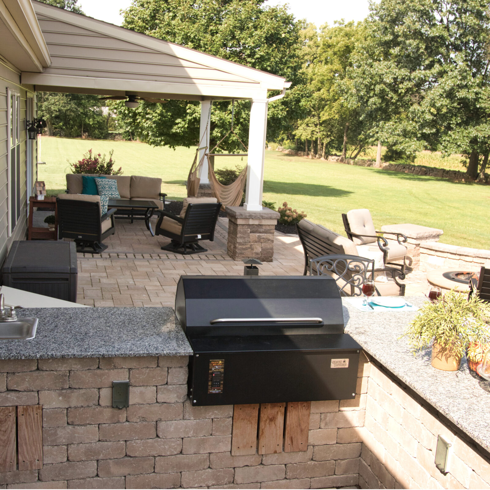 Thankfully, we can design your patio in just about any shape or size you can imagine! If you have a design concept, we’d love to start with what you have and offer more ideas on how it could serve you best. We especially enjoy Patio Landscape Design that includes custom fire pits, outdoor kitchens, and other features that add even more charm to your backyard. Add to that just the right placement of bushes and flowers that will burst with color season after season, and you can have a haven in the backyard!